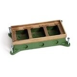The Arnev 3-gang shallow cast iron floor box for a concrete floor with a three-gang brass top. The box offers 1″ of adjustability before it is installed, the box cannot be adjusted after installation. The box is shallow making it perfect for concrete installations of 2.5″ to 3″ in depth. There are eight 3/4″ knockouts on the box to run your wires to. The box ships with a protective cement cap to keep the box clean and safe during concrete pouring. The box does not ship with a cover, there are several options available that are sold separately. If the box is to be used in a carpeted area, a sold separately carpet flange can be ordered, the Arnev carpet flange adds 3/8″ of height to accommodate the carpet and padding. For tile applications no flange is needed, simply pour your concrete to the level of the tile frame less the thickness of the tile. To further make installation as easy as possible, screws are provided to mount the cover assembly to the box. The box is UL listed for the USA, and cUL listed for Canada installations.