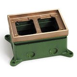 Deep, two gang cast box (partitioned), fully adjustable The Arnev AP-1102-58 is a cast iron concrete floor box with a dual gang brass top. The box is fully adjustable and offers 3/8″ of adjustability after it is installed via 4 screws.